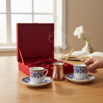 İkili Cezveli Kahve Fincan Seti Altın Yaldız Dekor 01-SM