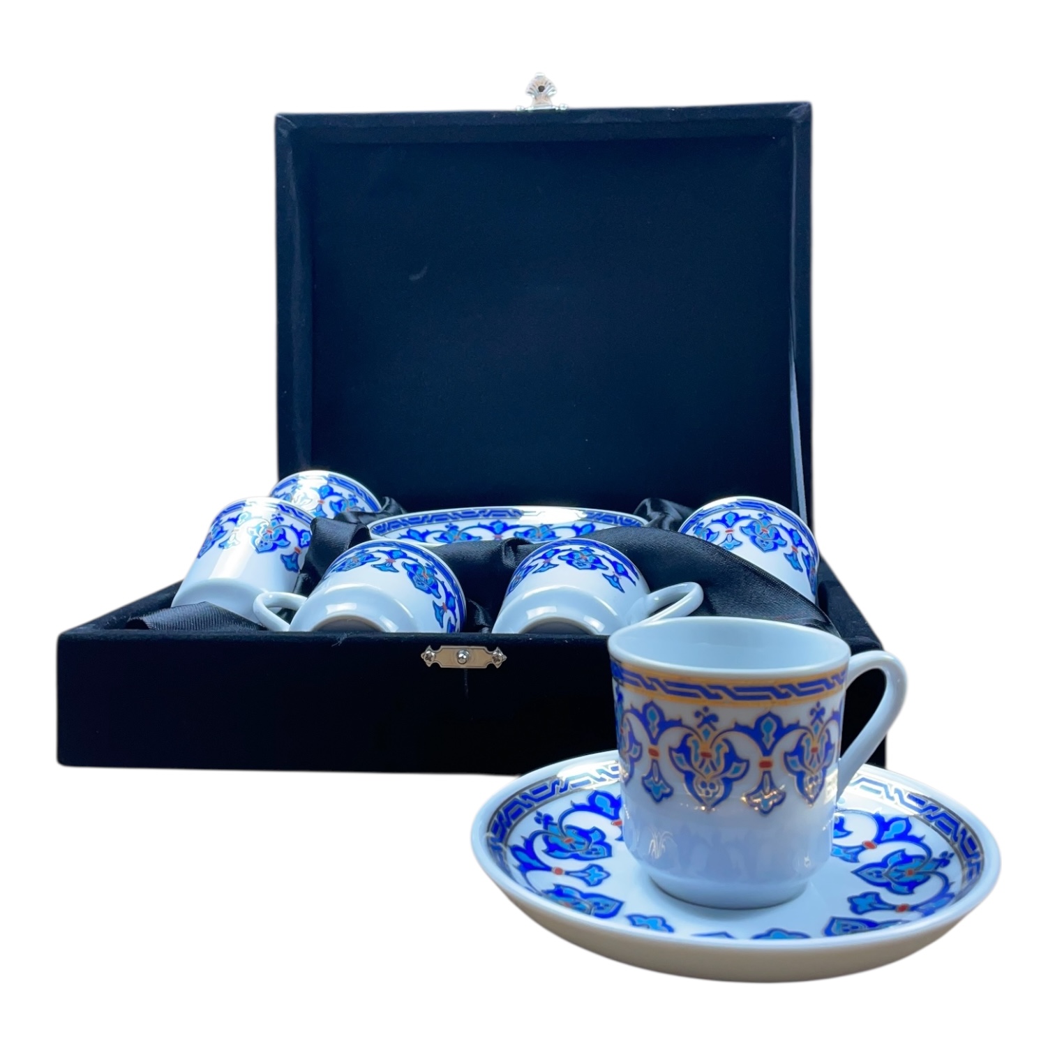 Altılı Kahve Fincan Seti Altın Yaldız Dekor Kadife Kutulu 01-S