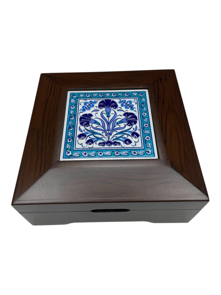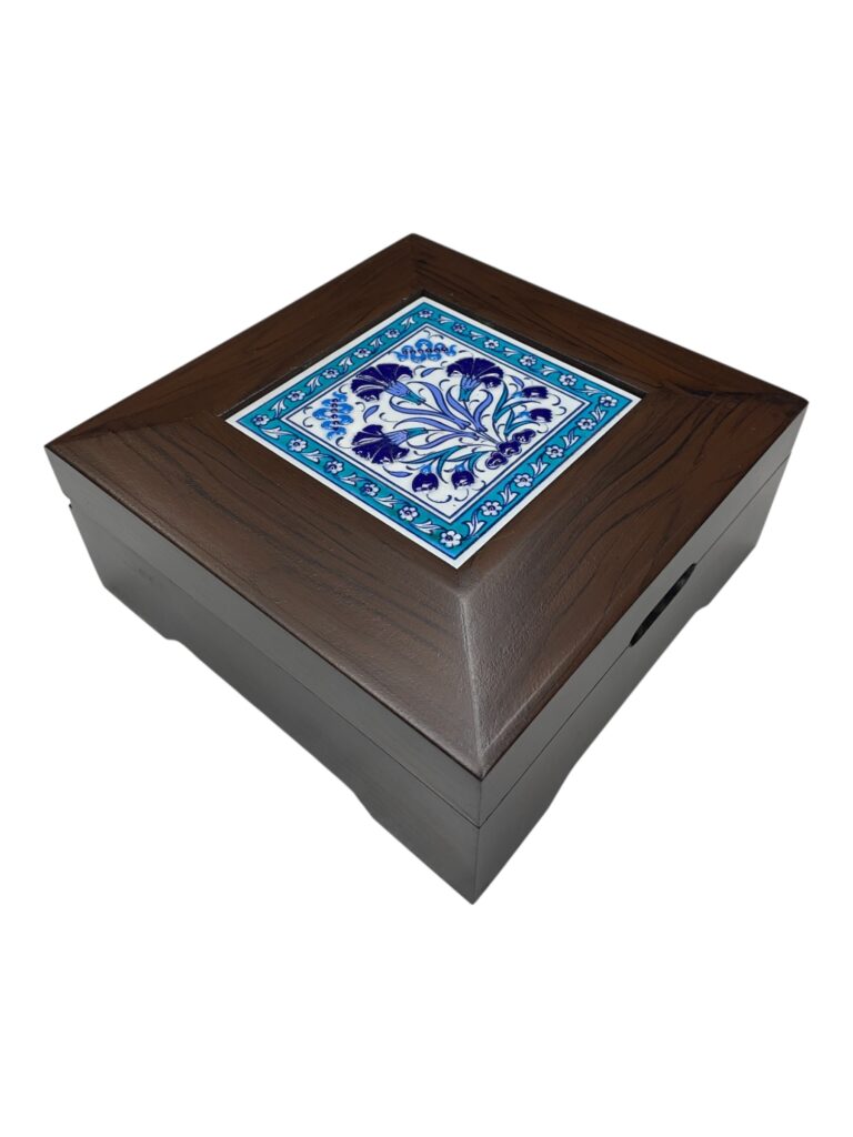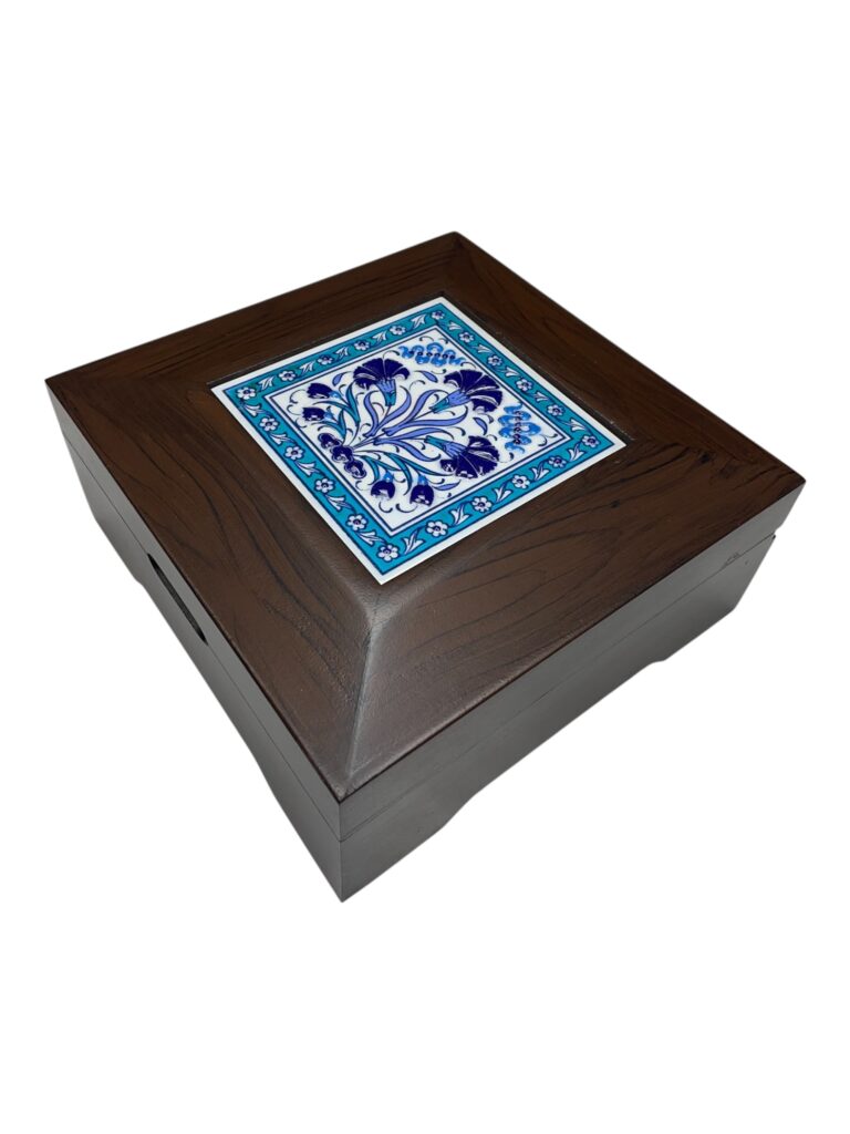 Çinili Ahşap Kutu 10×10 El Yapımı Çini Karolu 02