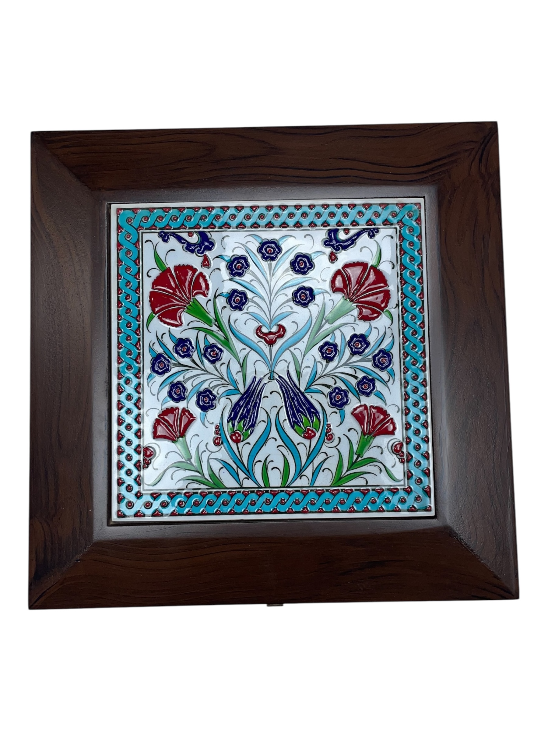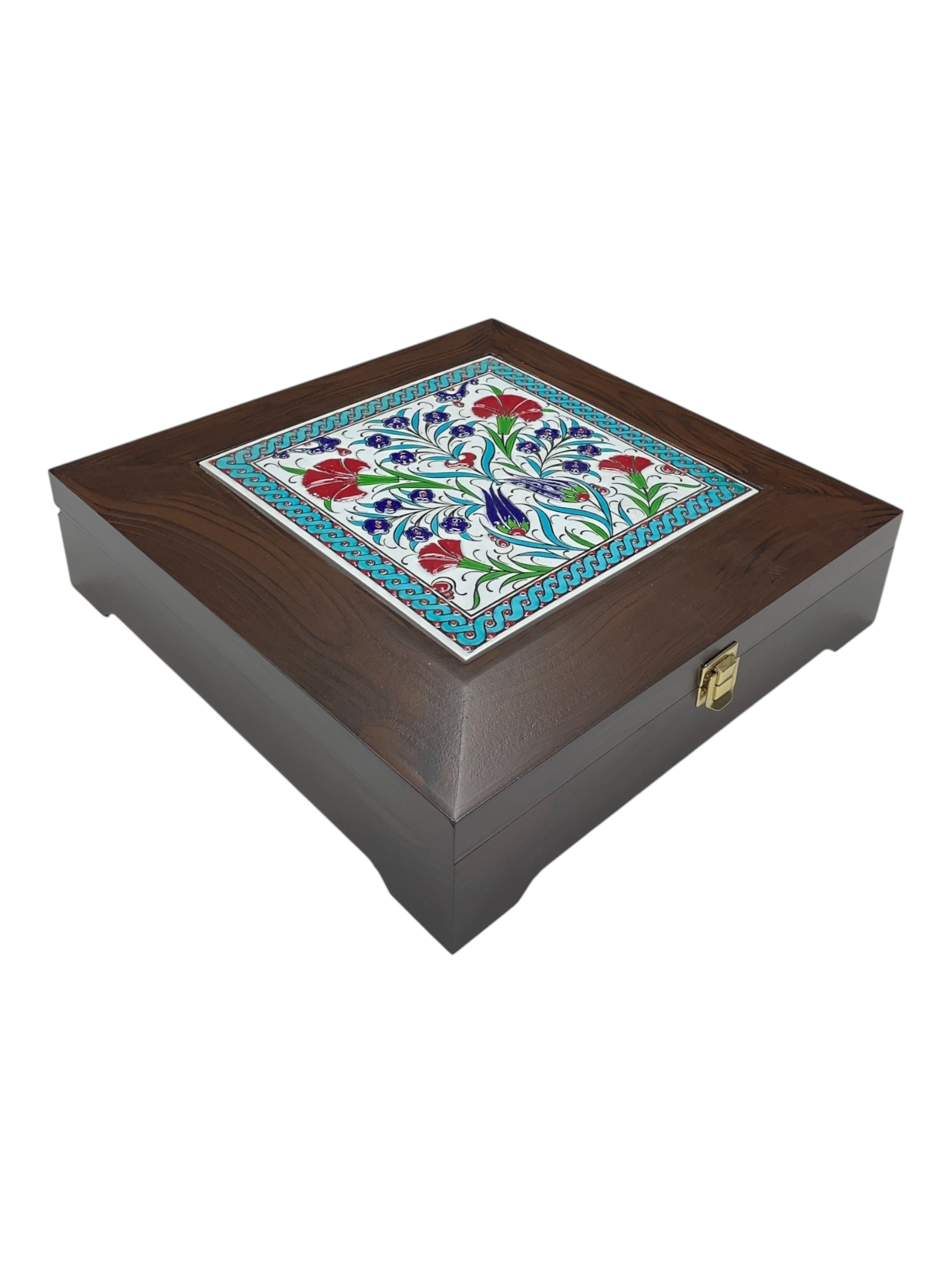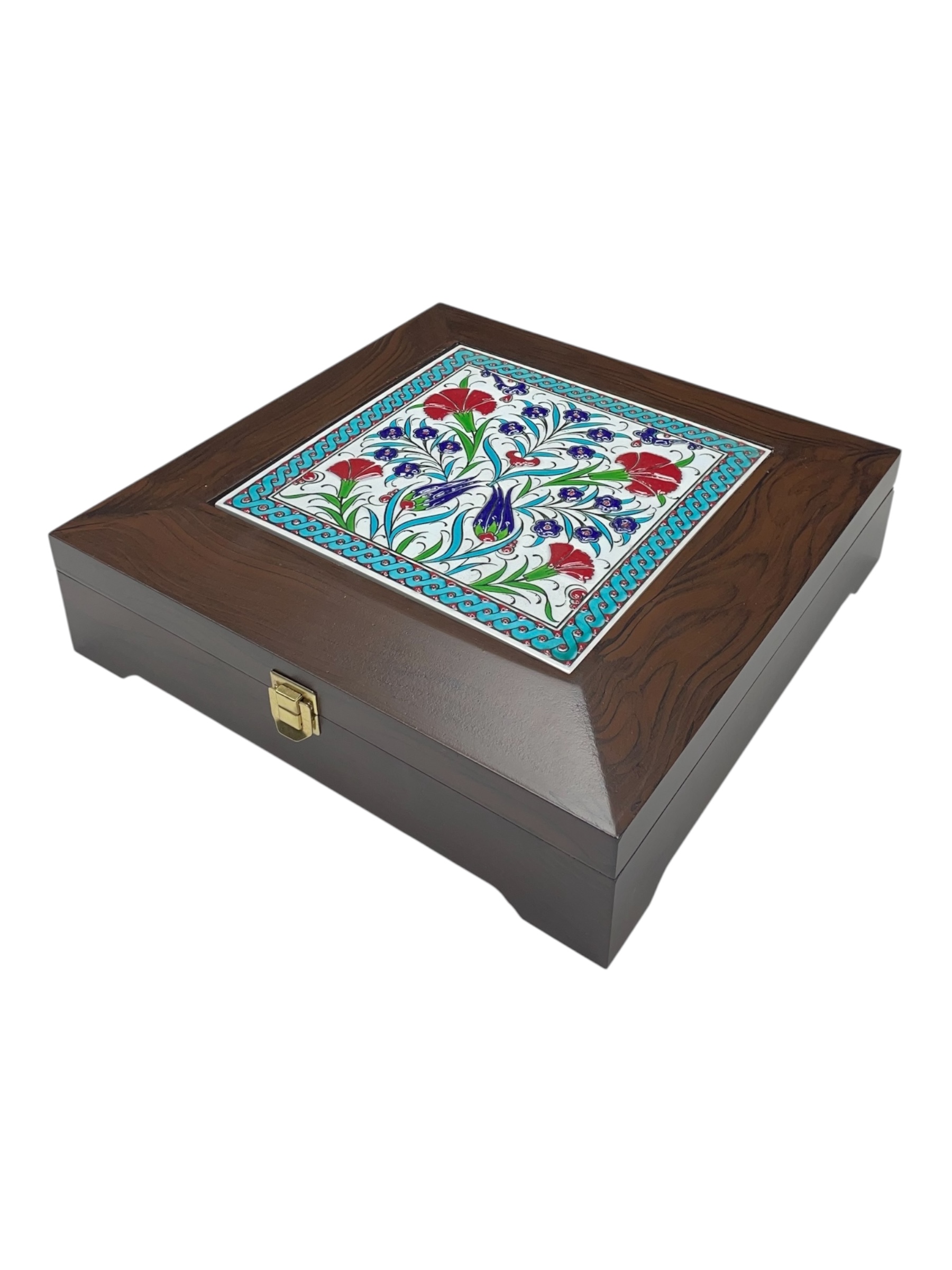 Çinili Ahşap Kutu 20×20 El Yapımı Çini Karolu 03