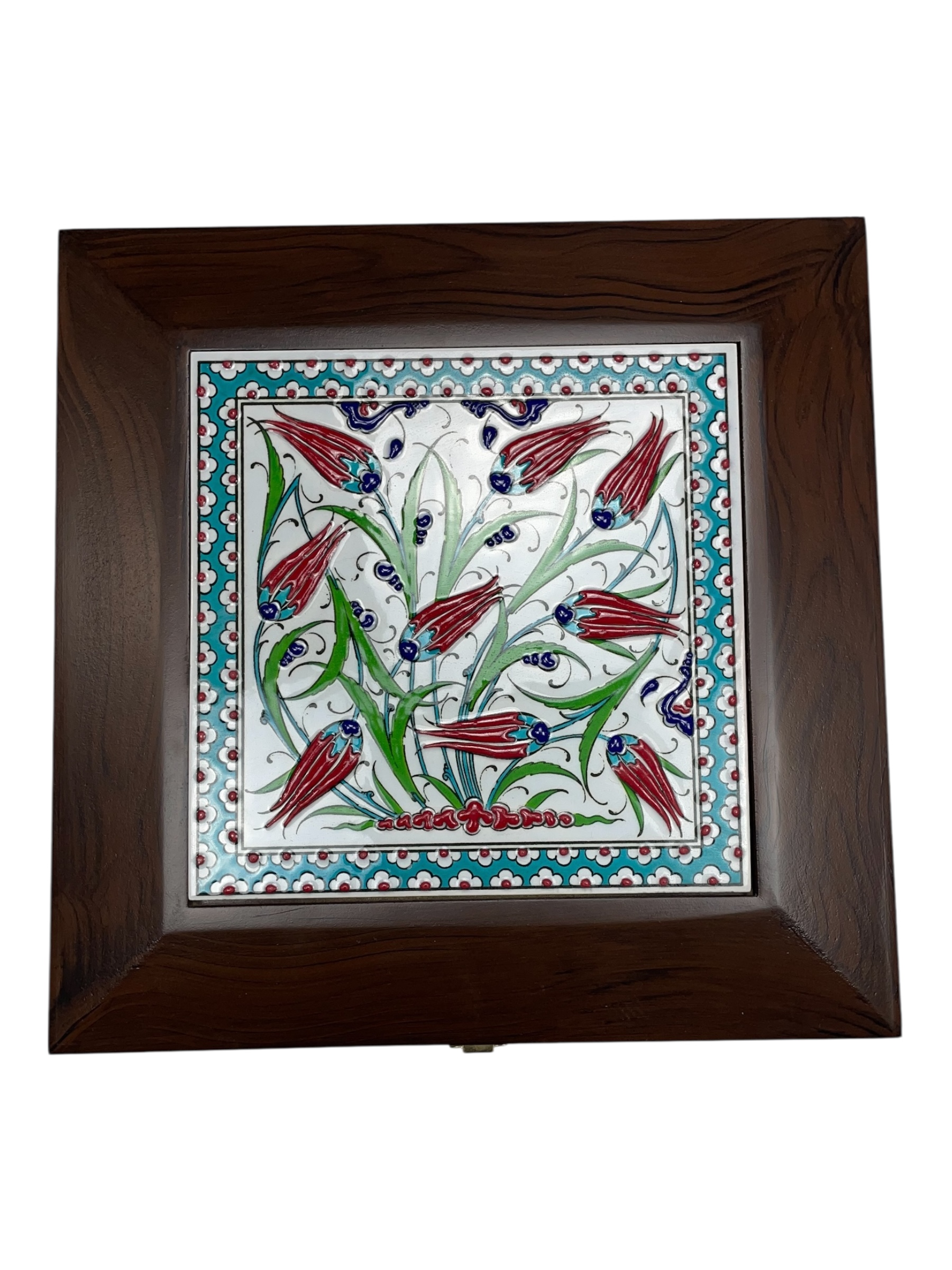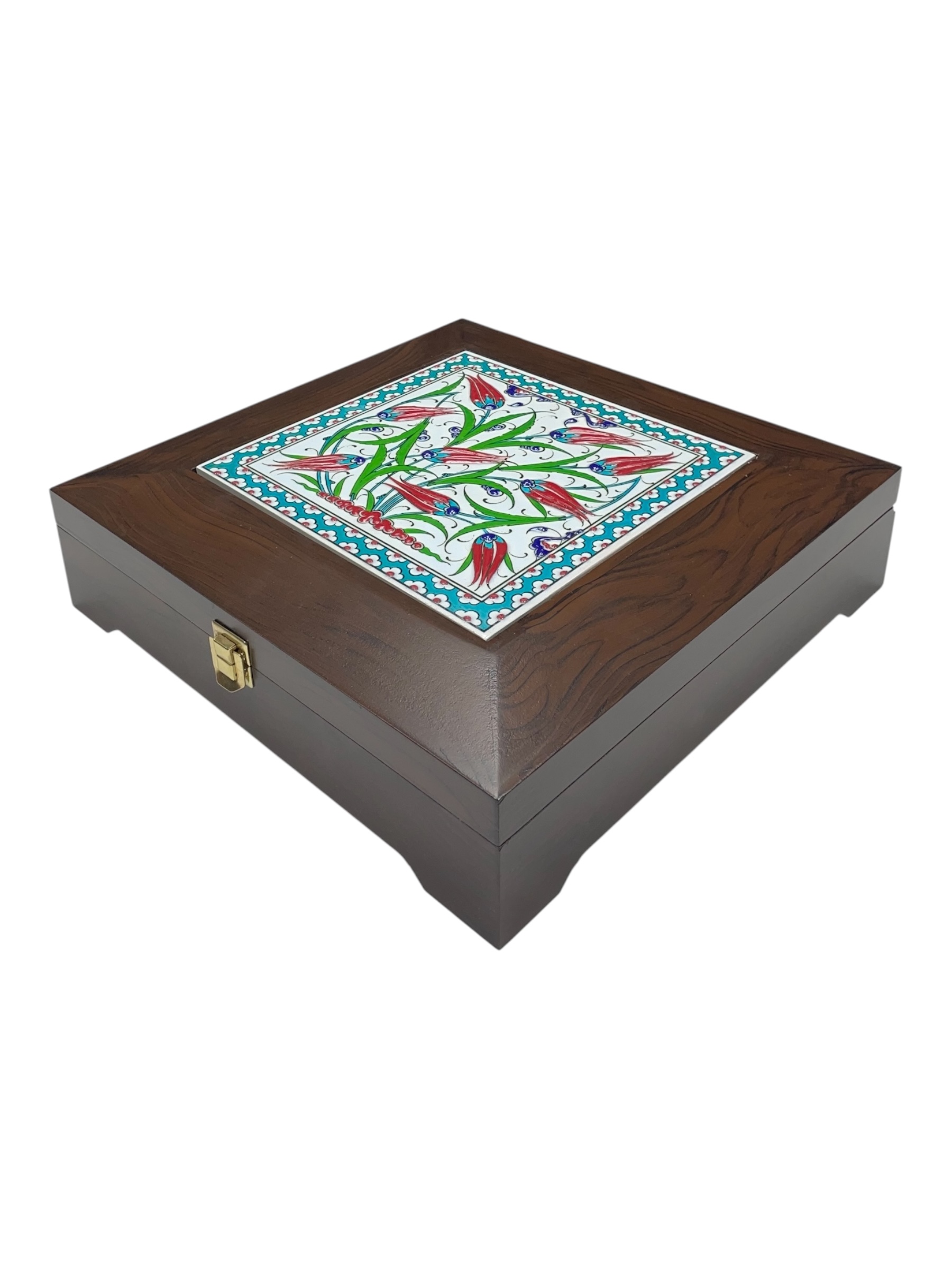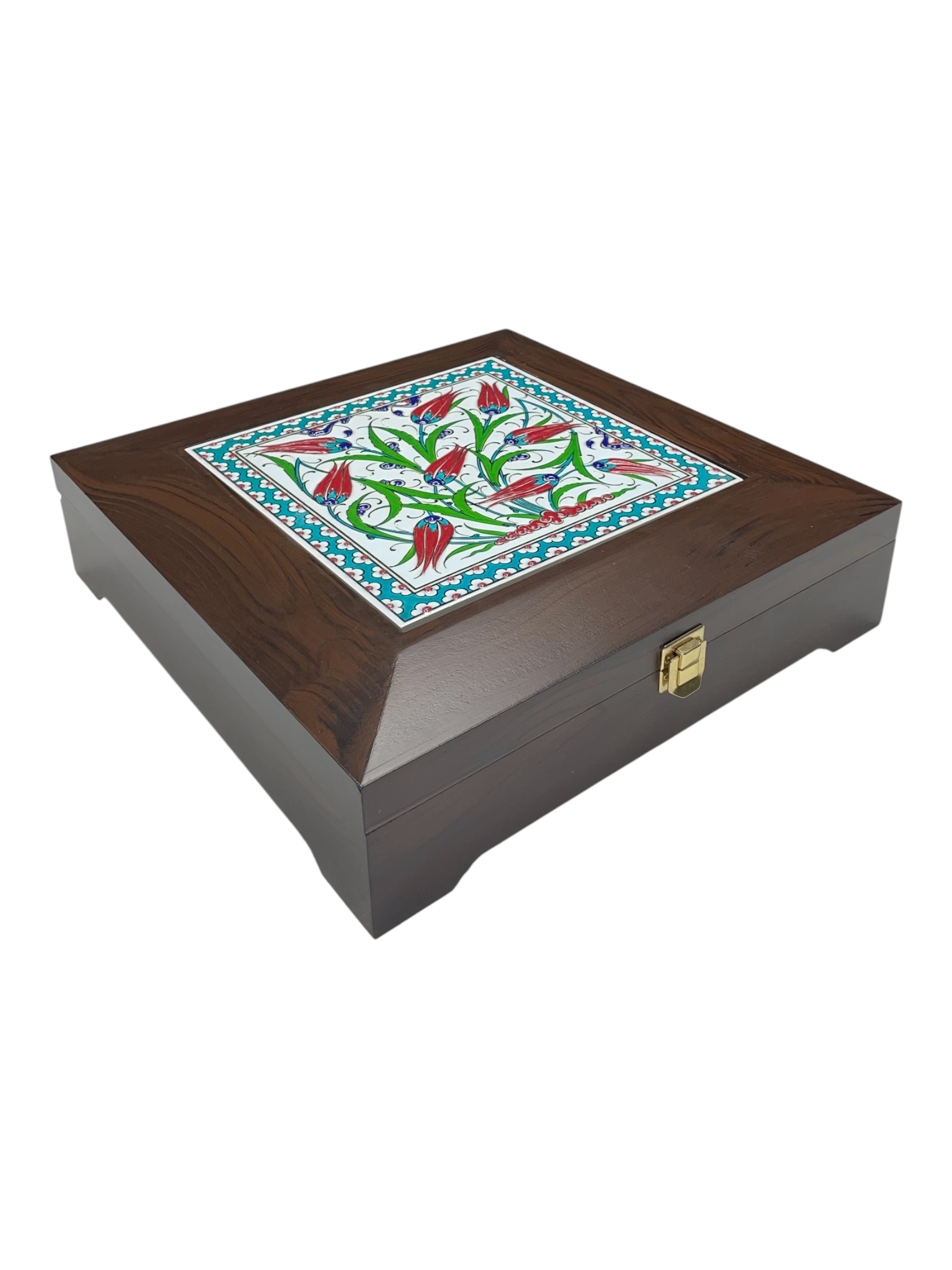 Çinili Ahşap Kutu 20×20 El Yapımı Çini Karolu 04