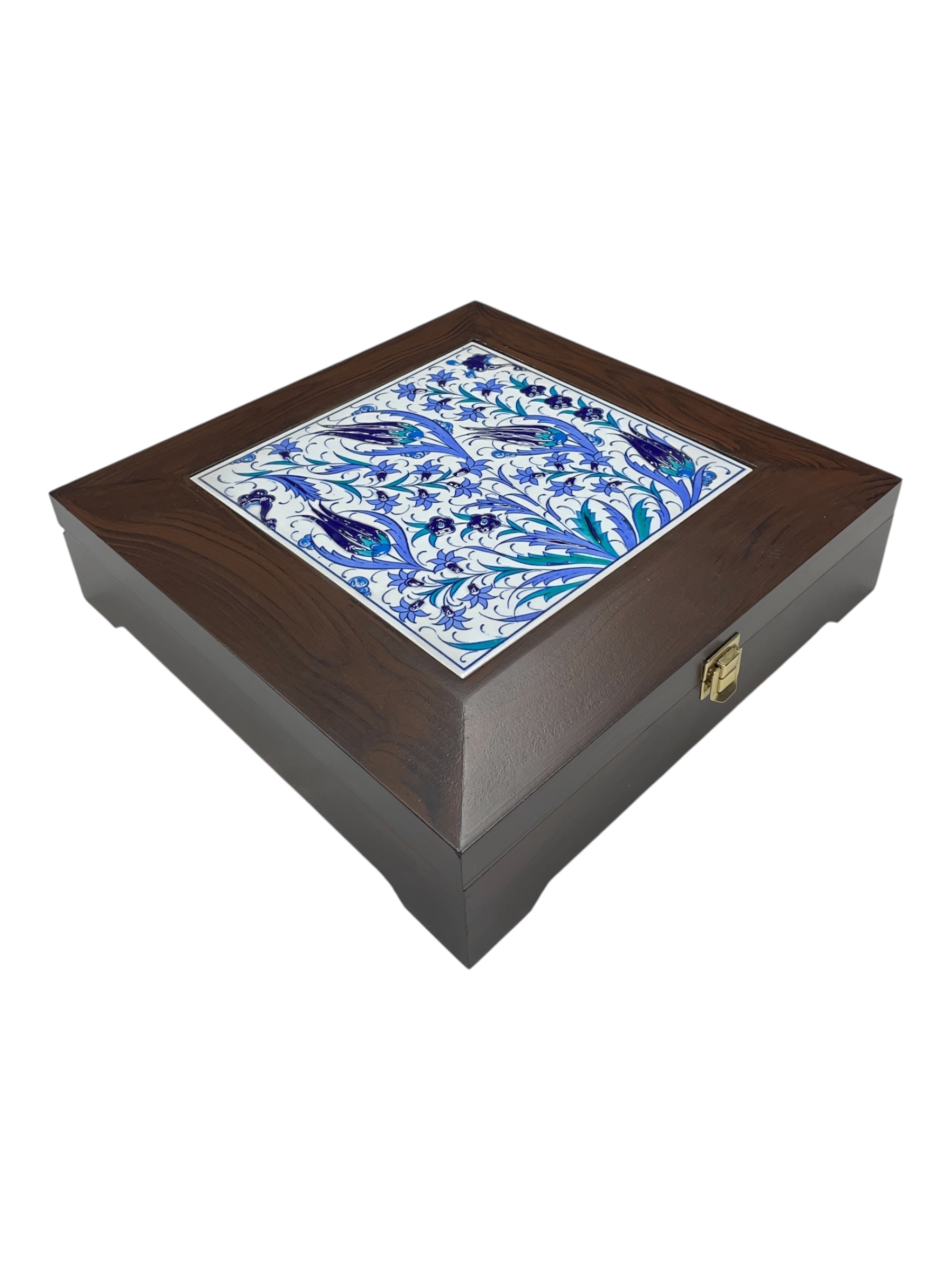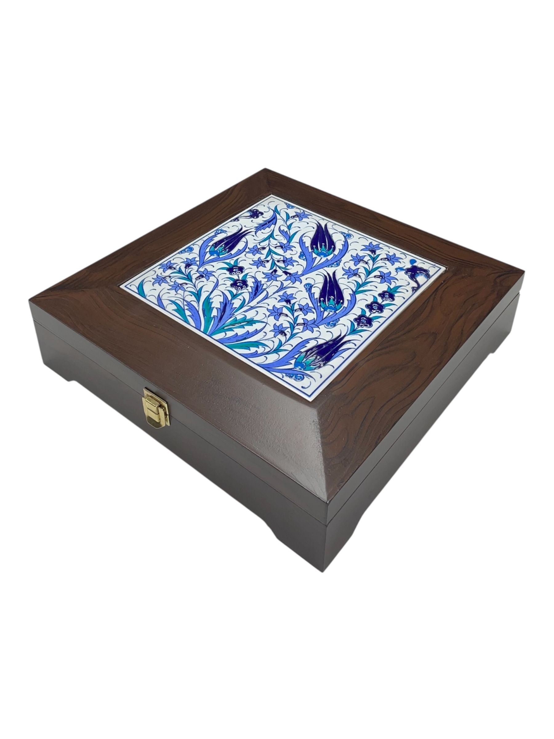 Çinili Ahşap Kutu 20×20 El Yapımı Çini Karolu 05