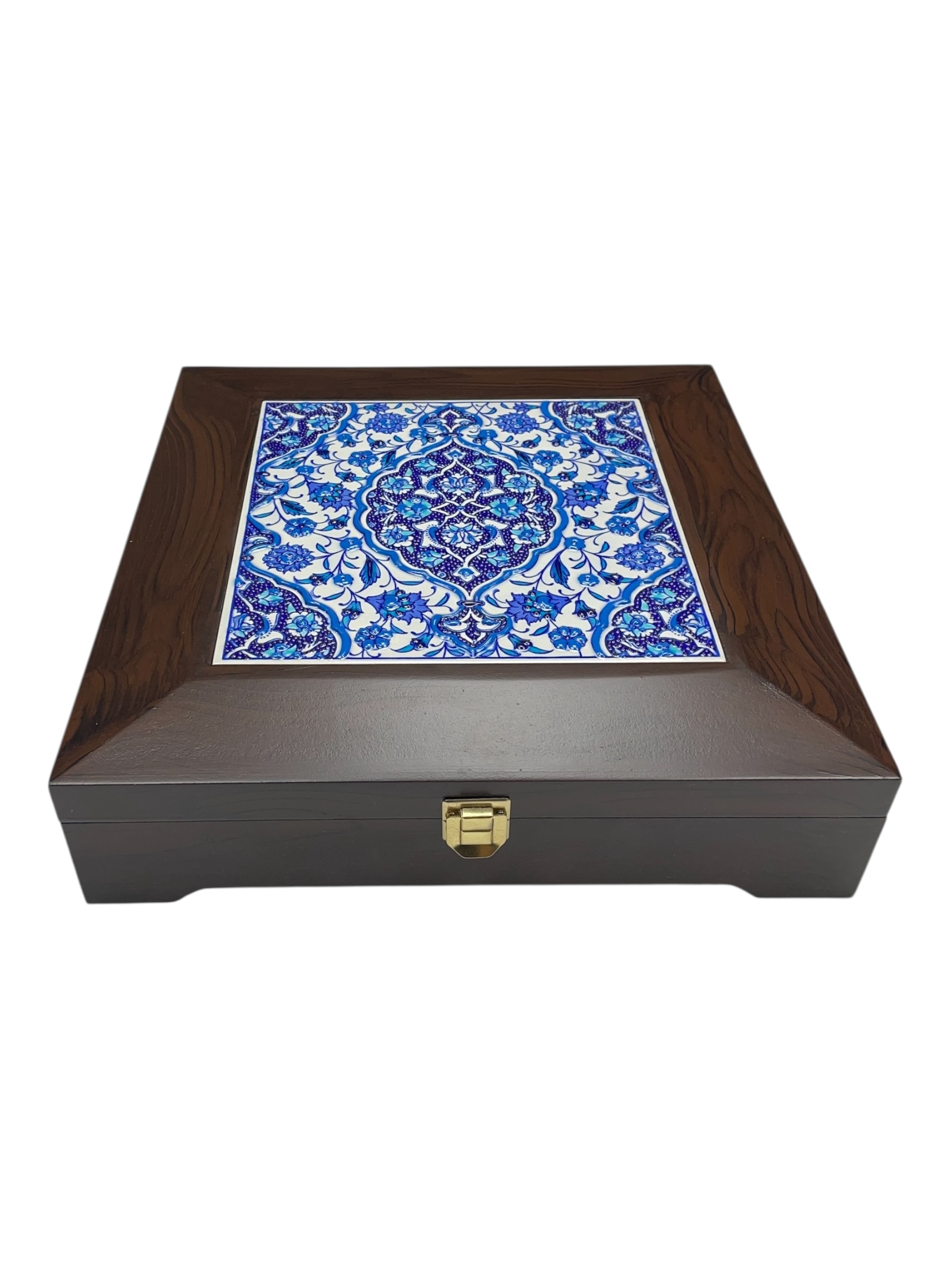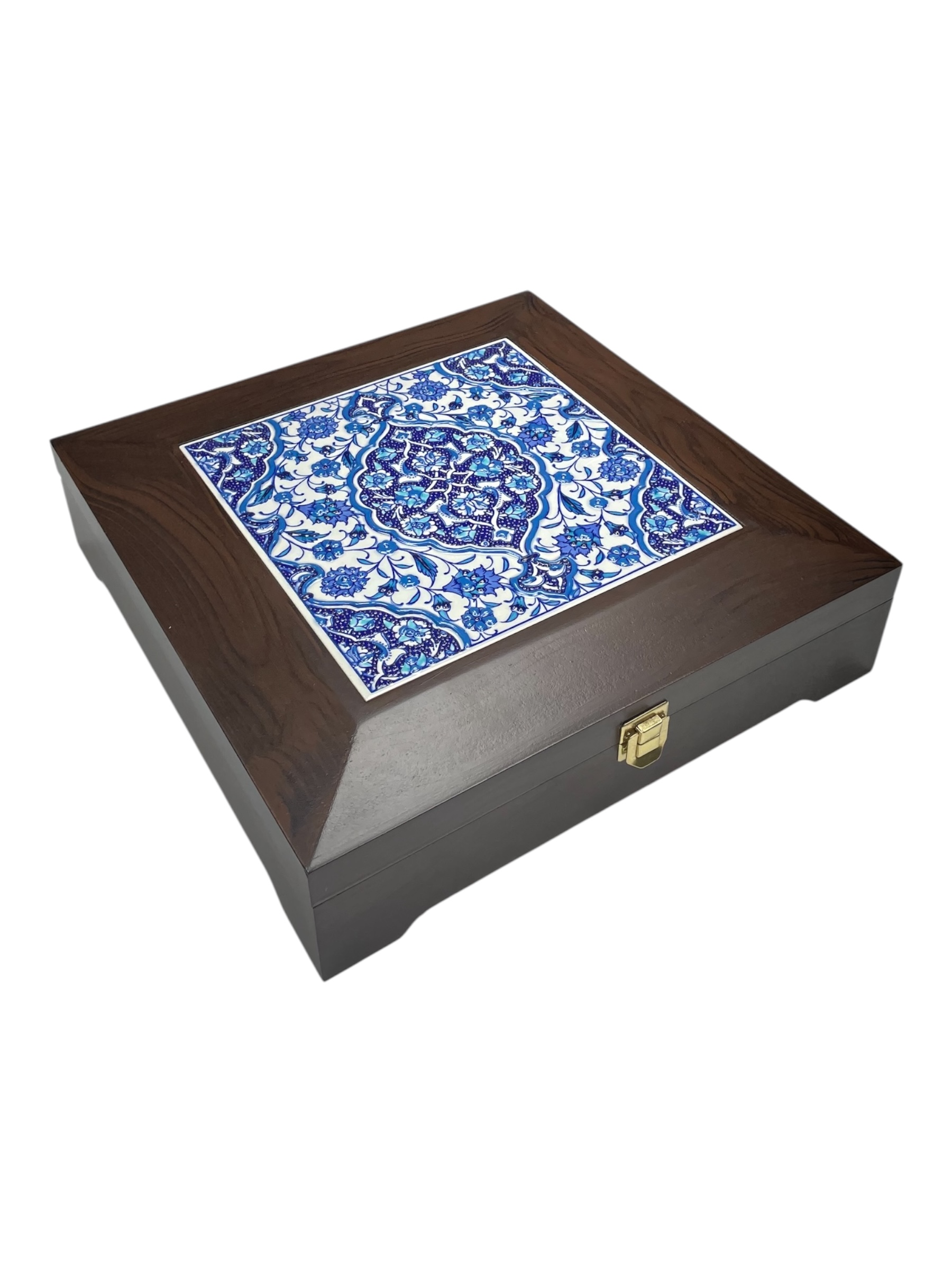Çinili Ahşap Kutu 20×20 El Yapımı Çini Karolu 09