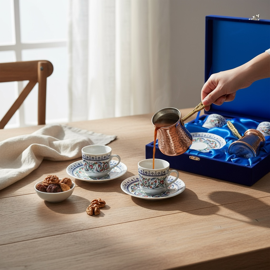 İkili Cezveli Kahve Fincan Seti Topkapı Dekor SM