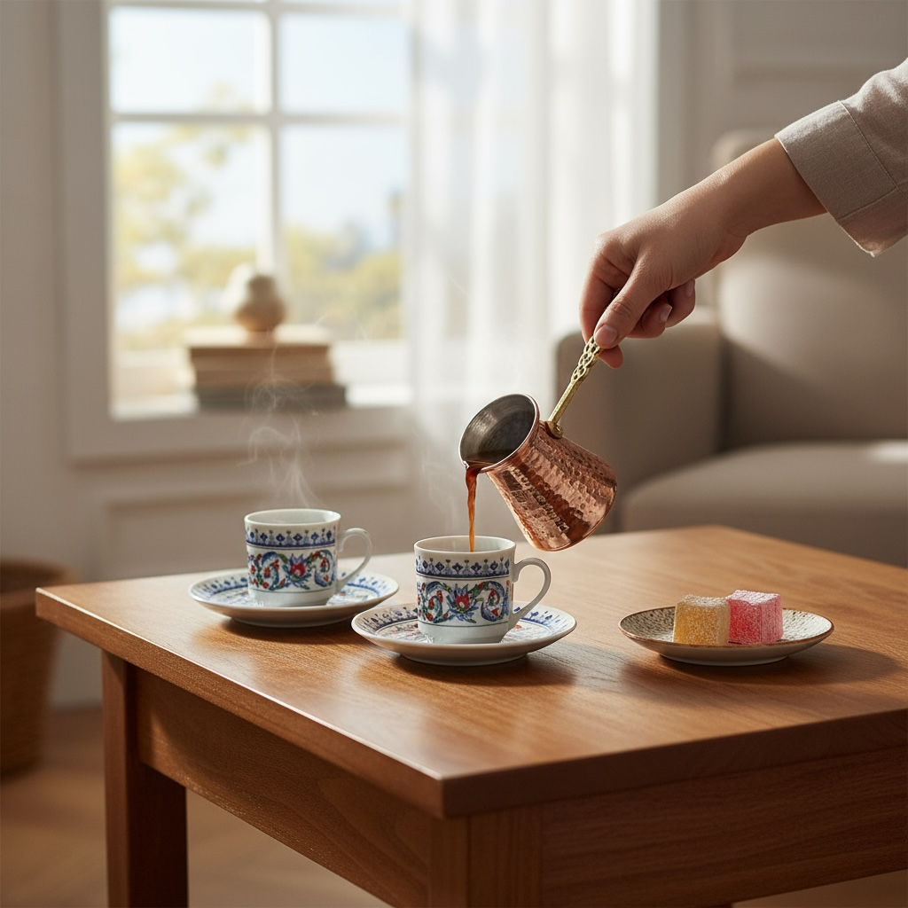 İkili Cezveli Kahve Fincan Seti Topkapı Dekor T