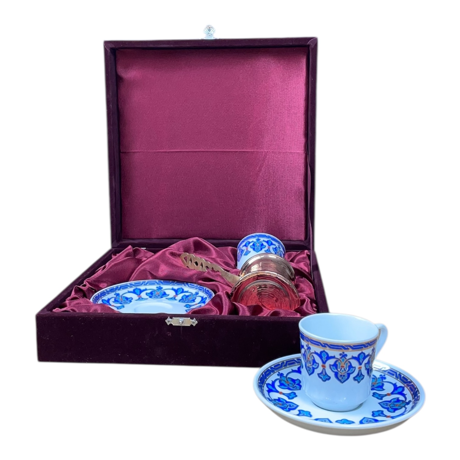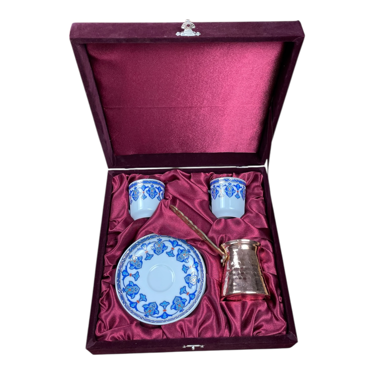 İkili Cezveli Kahve Fincan Seti Altın Yaldız Dekor 01-B