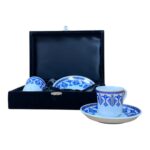 İkili Kahve Fincan Seti Altın Yaldız Dekor Kadife Kutulu 01-S