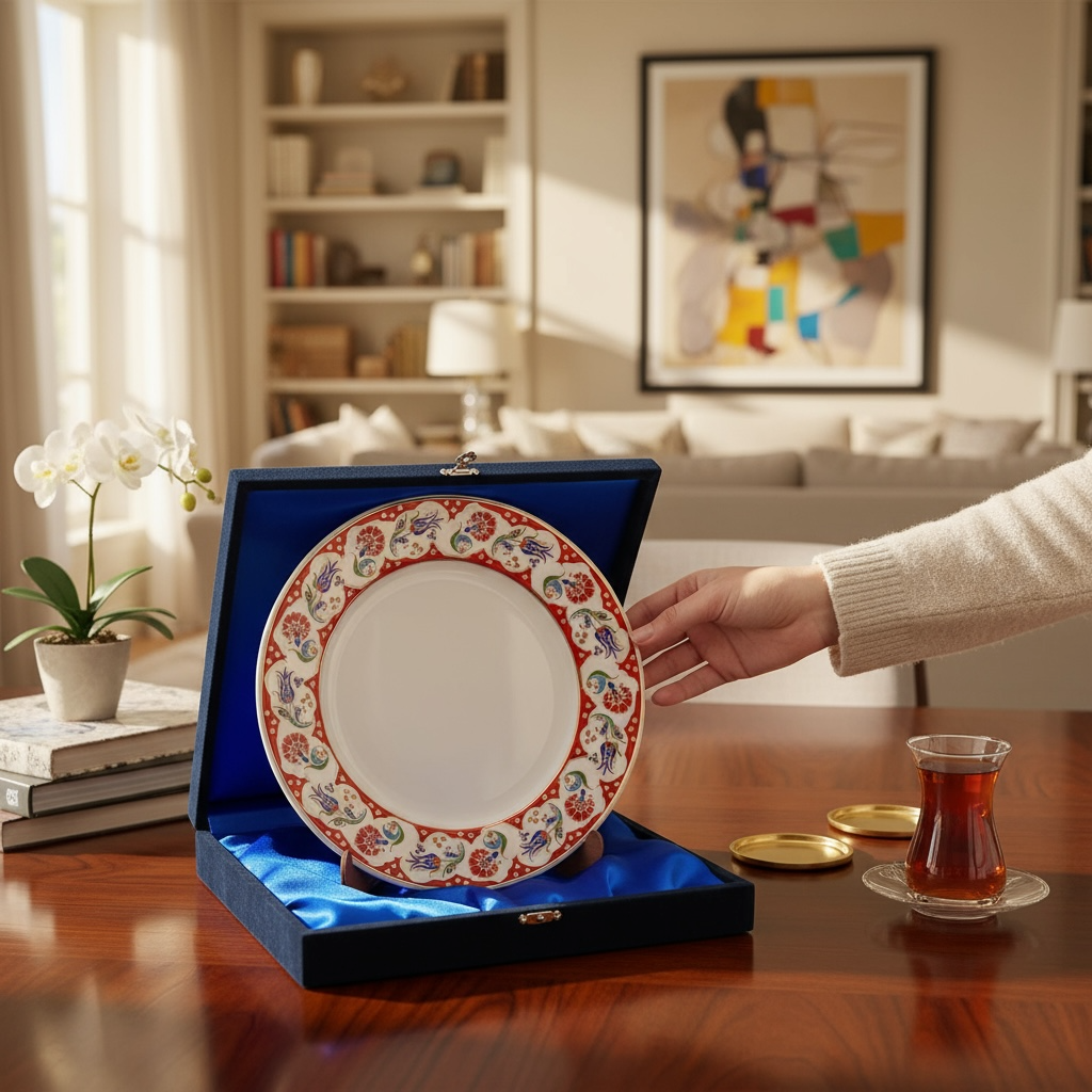 Plaket Porselen Tabak 25 cm Kadife Kutulu 07
