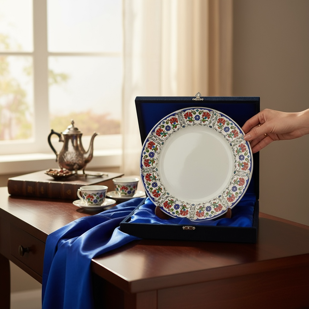 Plaket Porselen Tabak 25 cm Kadife Kutulu 17